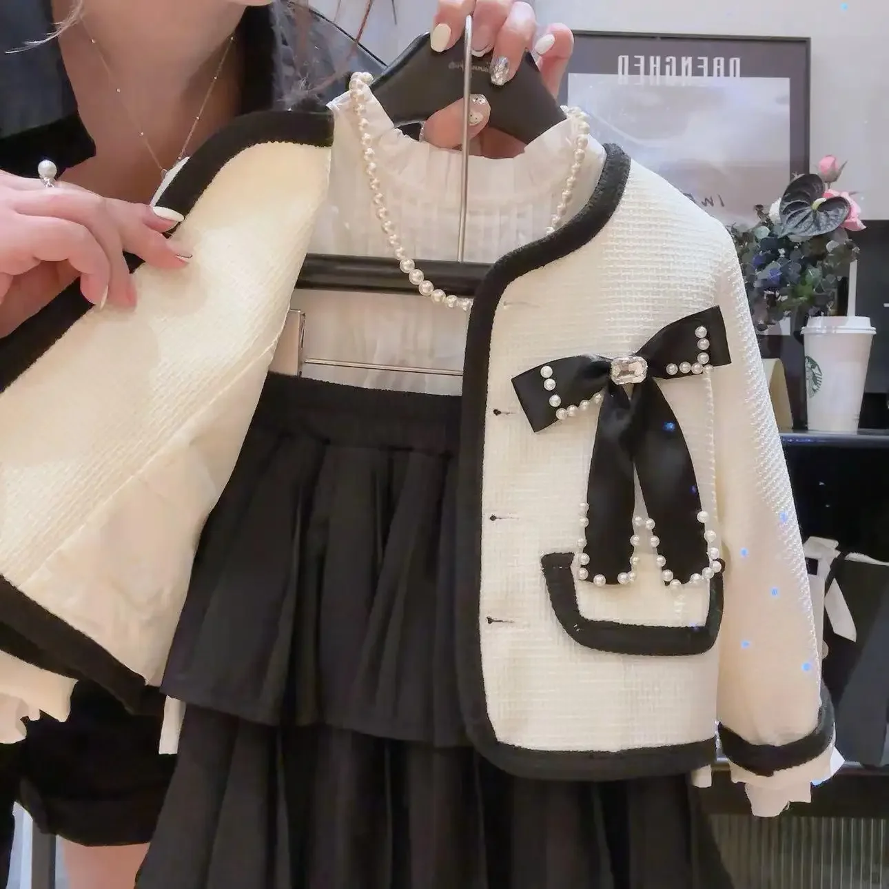 Conjuntos para niños nueva niña primavera otoño nuevo abrigo suelto de manga larga Falda plisada dos piezas moda Simple 2024 dulce