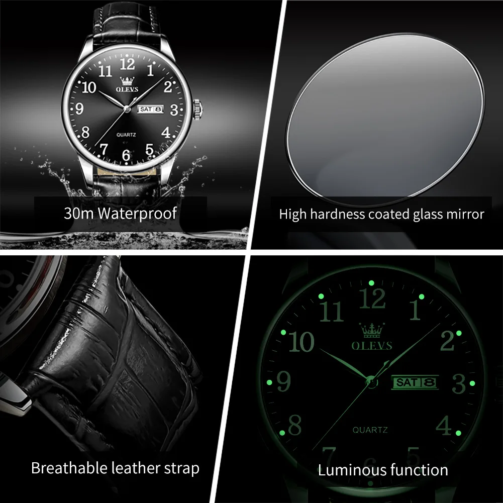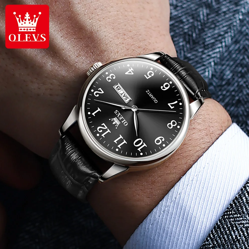 Men’s Quartz Watch – Arabic Numerals, Week Display & Water Resistant | SIVER