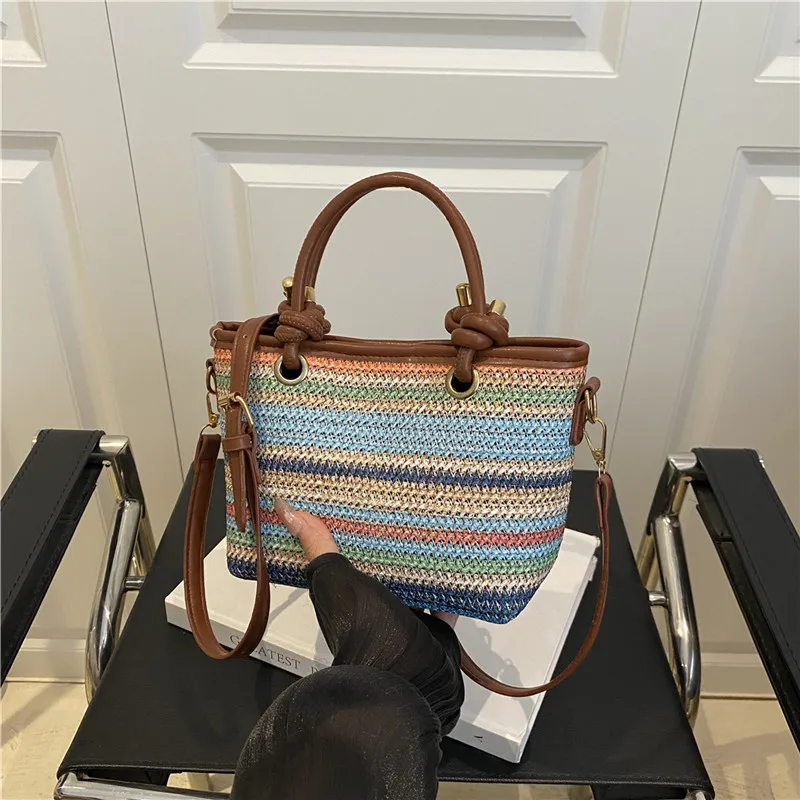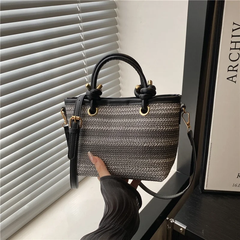 Women Handbag – Straw Cube Bag with Zipper Closure and Minimalist Design | SIVER